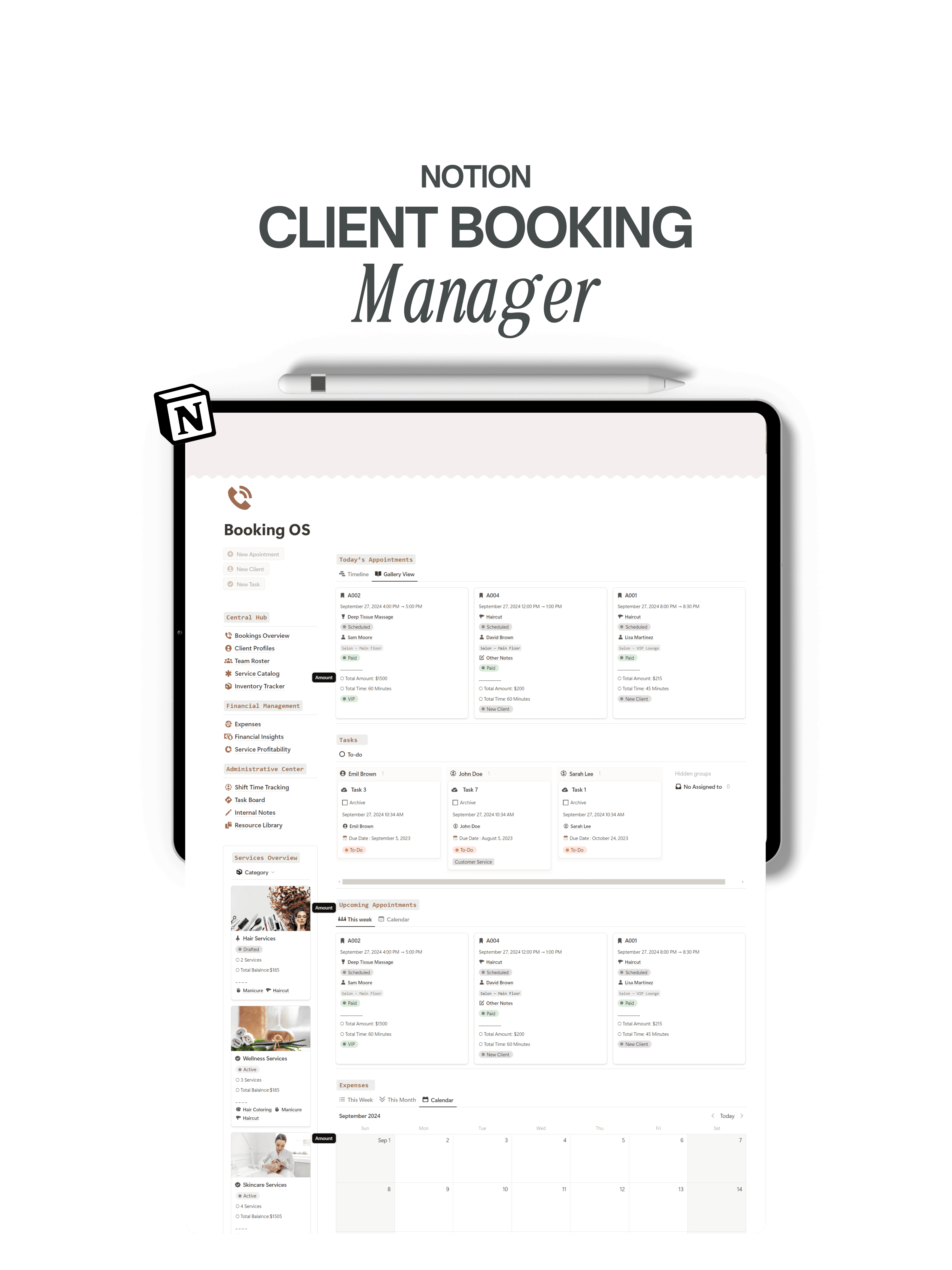 Manage client appointments, track services rendered, and maintain a clear overview of your business.